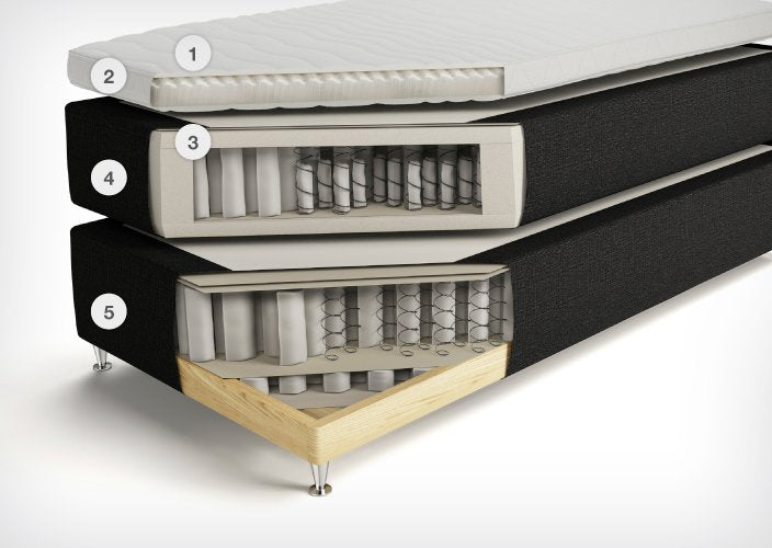 Jensen utilise uniquement des tissus laminés en mousse qui dissimulent la transition entre les parties fermes et souples du matelas. Tous les textiles utilisés dans la collection sont des tissus de mobilier de haute qualité.
