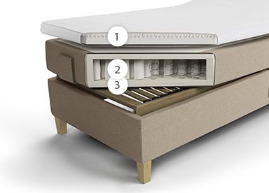 Le Signature Jensen J2 Dream offre toutes les fonctions nécessaires pour ajuster facilement votre lit selon les besoins de votre corps, ainsi que pour des activités telles que la lecture ou même le petit-déjeuner au lit. Il peut être posé sur une base ou équipé de pieds. Le matelas repose sur une base dotée d’un matelas réversible Jensen. D’une simple pression sur un bouton, vous pouvez relever ou abaisser le lit à chaque extrémité pour l’adapter à vos préférences.