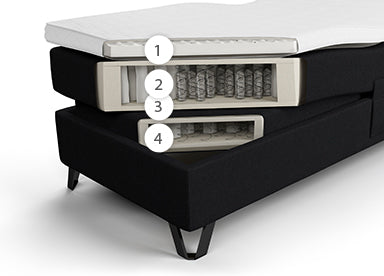La technologie intégrée à ce lit élégant est discrètement dissimulée derrière un cadre entièrement recouvert de tissu, ce qui lui donne l’apparence d’un lit continental lorsqu’il est en position inactive. Le Jensen Aqtive II est équipé d’une double suspension, avec des systèmes de ressorts dans le matelas réversible et dans la base.